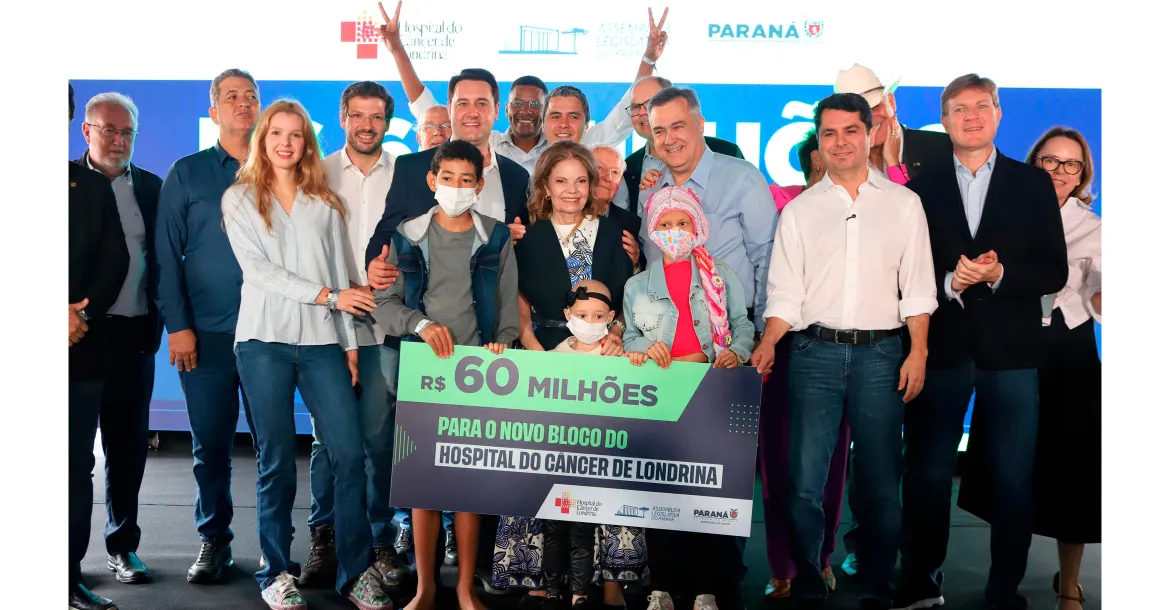O governador Carlos Massa Ratinho Júnior anunciou, nesta sexta-feira (31), em parceria com deputados estaduais e a bancada federal, um investimento de R$ 60 milhões para a construção do Novo Bloco Hospitalar do Hospital do Câncer de Londrina (HCL), uma das maiores expansões estruturais da história da instituição. O anúncio ocorreu nas comemorações dos 60 anos do HCL, na sede do hospital. O prefeito de Londrina, Tiago Amaral, participou, assim como a secretária municipal de Saúde, Vivian Feijó, e outras autoridades.